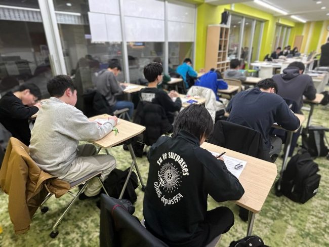 出題範囲は、各学年の教科書範囲から。事前に配布した準備プリントで皆一生懸命に練習し、全100問の英単語問題に挑戦しました。準備プリントの段階から「覚えているつもり」では通用しない内容に、生徒さんたちは一問一問真剣に向き合い、英語学習の原点を見直す大切な機会となりました。