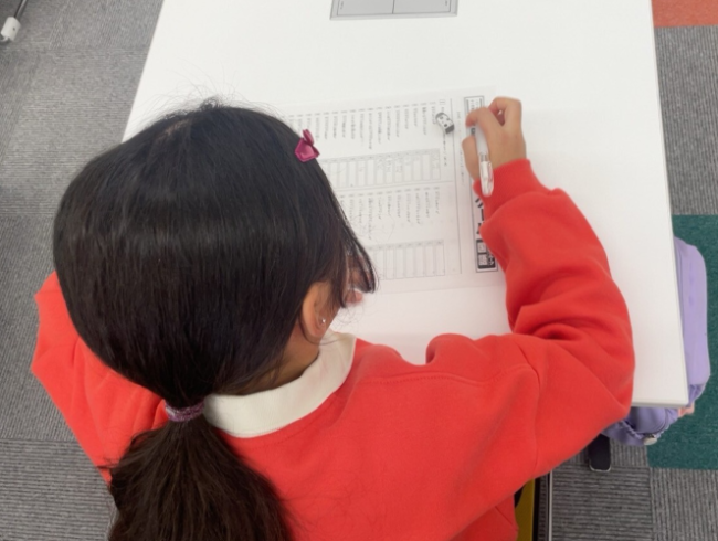 年2回開催される漢字・計算コンクール。今回も参加した生徒の皆さんが、真剣に問題に向き合う姿がとても印象的でした! コンクール本番の試験内容は、事前に配付される「準備プリント」の中から同じ形式の問題が出題されます。準備プリントをボロボロになるまで何度もくりかえし練習したり、友だちと問題を出し合ったり、コンクールに向けて必死に準備していました。