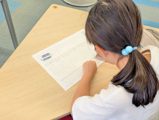 コンクール本番ではそれまでのがんばりを発揮すべく、真剣な表情で100問の漢字と50問の計算問題にチャレンジしました!