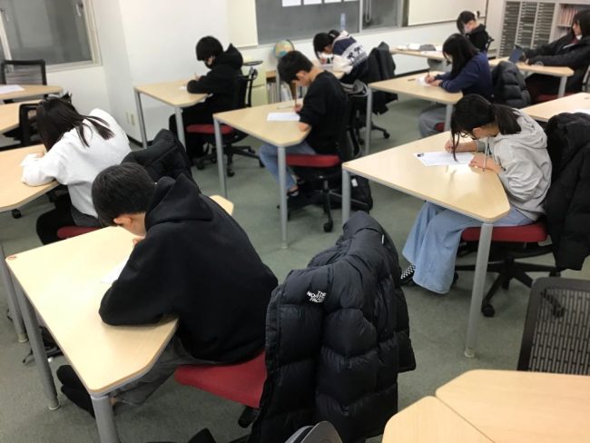 出題範囲は、各学年の教科書範囲から。事前に配布した準備プリントで皆一生懸命に練習し、全100問の英単語問題に挑戦しました。準備プリントの段階から「覚えているつもり」では通用しない内容に、生徒さんたちは一問一問真剣に向き合い、英語学習の原点を見直す大切な機会となりました。