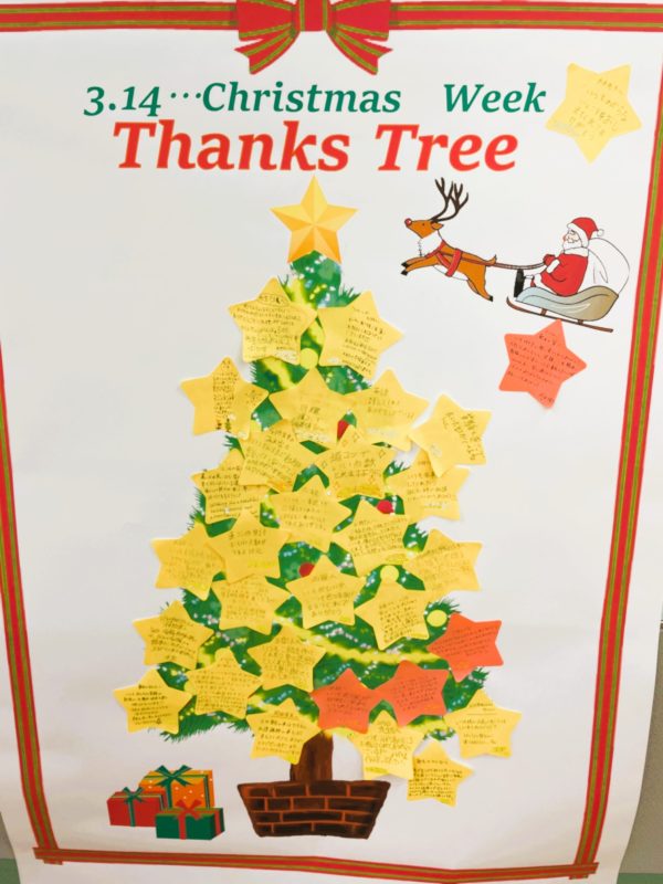 『クリスマスには手紙やギフトで身近な人へ感謝や気持ちを表現する』という欧米の習慣にならい、教室では「Thanks Tree」を生徒さんたちと一緒に作成しています!