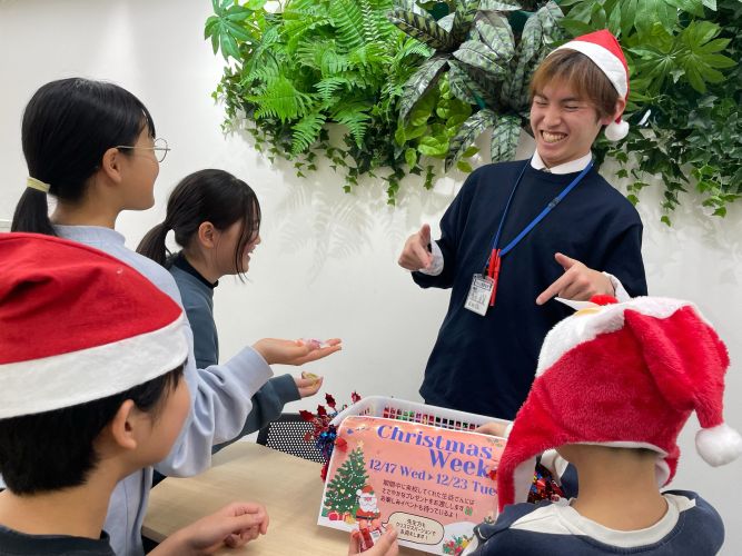 クリスマスウィーク中は、来校してくれた生徒さん一人ひとりに、ささやかではありますがお菓子をプレゼント!