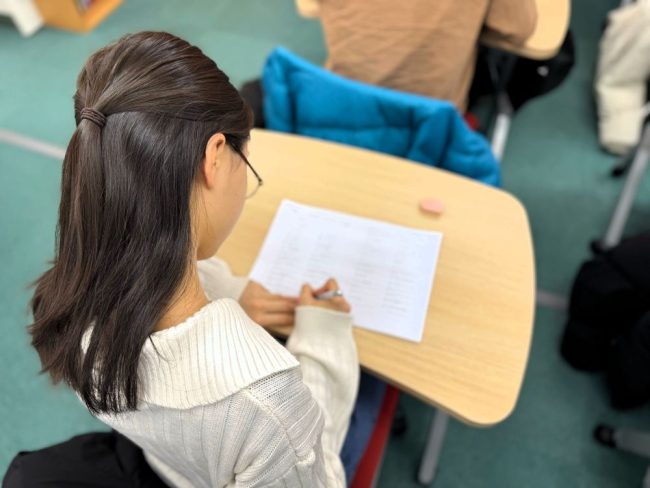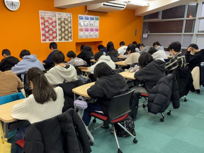 出題範囲は、各学年の教科書範囲から。事前に配布した準備プリントで皆一生懸命に練習し、全100問の英単語問題に挑戦しました。準備プリントの段階から「覚えているつもり」では通用しない内容に、生徒さんたちは一問一問真剣に向き合い、英語学習の原点を見直す大切な機会となりました。
