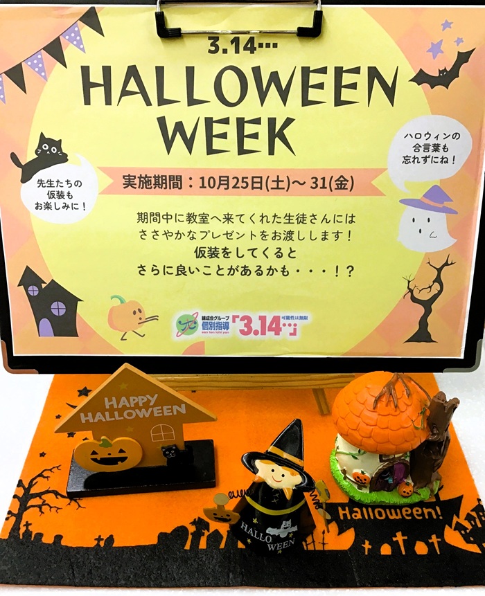定期テストがある中学校もあるので、ささやかながらのハロウィンウィークです。来校した生徒には「Trick or Treat」の合言葉で素敵なお菓子をプレゼント!