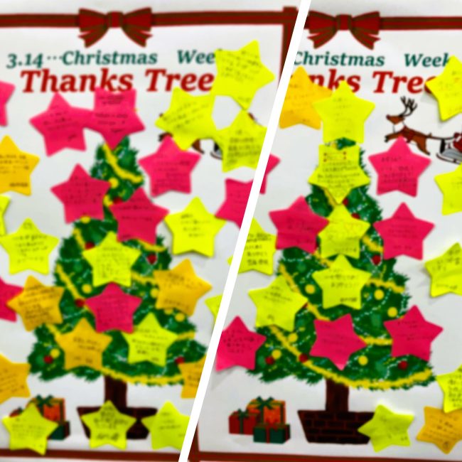 『クリスマスには手紙やギフトで身近な人へ感謝や気持ちを表現する』という欧米の習慣にならい、教室では「Thanks Tree」を生徒さんたちと一緒に作成しています!