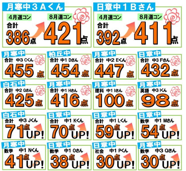 上記のほかにも、点数激アップ者&成績優秀者が続出!