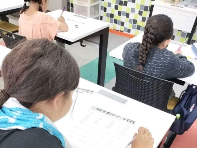 コンクール本番ではそれまでのがんばりを発揮すべく、真剣な表情で100問の漢字と50問の計算問題にチャレンジしました!