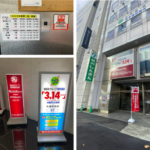 交通アクセスが抜群な3.14札幌中央校でぜひ英検を受験してみませんか?塾生以外の方からのお申込みも年々増えており、また親子で受験されている方も多くいらっしゃいます。一緒に同じ目標に向かい取り組むことで、ご家庭での絆を深める機会としてぜひご活用いただければと思っております。