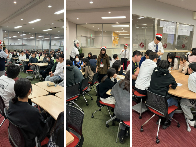 また、ゼミの最後にはクリスマス会としてクイズ大会を実施しました。普段は接点の少ない他スクールの生徒とも交流しながら取り組むことで、教室内は大いに盛り上がり、互いに刺激を受け合う貴重な機会となりました。楽しみながら学ぶ中で、「もっと頑張りたい」「負けたくない」という前向きな気持ちが芽生え、今後の学習へのモチベーション向上にもつながりました。
